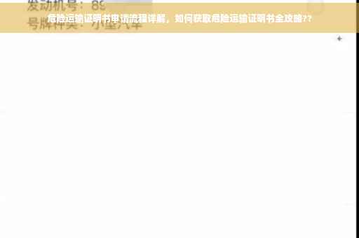 通过本文的介绍,相信大家对危险运输证明书的申请流程有了更加详细的了解,在实际操作中,申请者还需要根据当地的具体情况进行操作,如有疑问,可以向当地交通运输管理部门或相关机构进行咨询,希望本文能对大家有所帮助,确保危险品运输的安全和合法。
