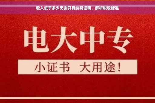 摘要:根据相关规定,个人收入低于一定金额时,无需提供纳税证明。具体金额因地区和政策而异,需参照当地税务部门的规定。此政策旨在减轻低收入群体的税务负担,促进社会公平和经济发展。