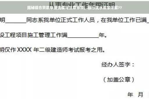 摘要:申请组合贷款需要银行流水记录,这是评估申请人还款能力的重要依据。申请流程包括提交贷款申请、提供相关资料、银行审核等步骤。注意事项包括准备齐全的流水记录、保持良好的信用记录、注意利率和还款方式等。在申请组合贷款时,申请人需要了解这些要求和流程,以确保顺利获得贷款。