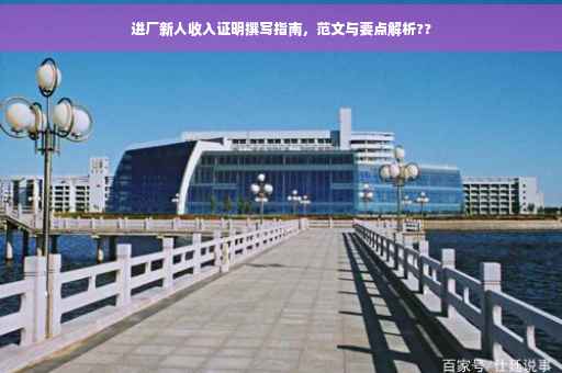 摘要:对于刚进厂的新员工,撰写收入证明是必要的一步。收入证明应包含个人基本信息、工作单位、职位、工作时间以及预计或实际的收入等内容。格式应简洁明了,语言规范。可以参考收入证明的范文进行撰写,确保信息的准确性和完整性。范文应包括个人信息、工作内容、薪资等相关信息,以此证明个人收入状况。