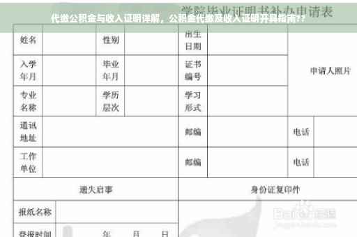 收入证明是代缴公积金过程中不可或缺的一部分,它不仅能证明个人的收入水平,还能展示个人的工作稳定性和还款能力,在申请贷款、提取公积金等操作时,收入证明是重要的证明材料之一,保持收入证明的真实性和有效性至关重要。
