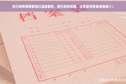 随着金融科技的飞速发展,跨行转账已成为我们日常生活中不可或缺的一部分,农业银行(农行)作为国内领先的金融机构之一,其转账服务深受大众信赖,本文将详细介绍使用农行转账至邯郸银行(另一家国内知名银行)的流程、注意事项以及银行流水等相关知识。