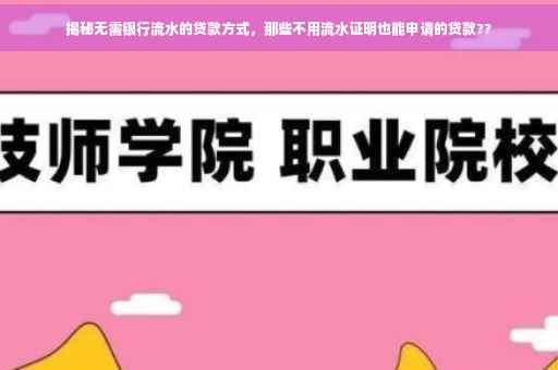 摘要:本文将揭秘那些无需银行流水的贷款方式,介绍一些不需要提供银行流水证明即可获得贷款的渠道和特点。让我们一起了解这些贷款方式,探讨其可行性和注意事项。??(字数控制在约150字以内)