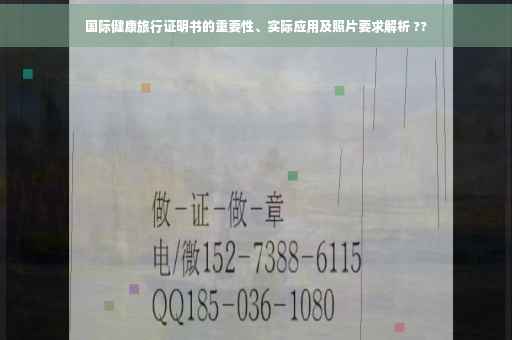 摘要:国际健康旅行证明书在跨国旅行中具有重要意义,确保旅行者健康并防止疾病传播。其实际应用中,证明书的准确性和有效性对旅行者顺利入境至关重要。证书上需附寸照以验证身份。寸照要求严格,需遵循特定规格和背景色。了解并遵守这些要求,对需要国际健康旅行证明书的个人和企业至关重要。