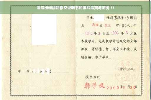 随着旅游业的繁荣发展,酒店业也迎来了前所未有的发展机遇,在酒店日常运营过程中,物品的出租与管理成为了一项重要工作,为确保物品安全、明确责任界限,酒店出租物品移交证明书的撰写显得尤为重要,本文旨在详细阐述酒店出租物品移交证明书的撰写要点,确保双方在物品交接过程中权益得到充分保障。