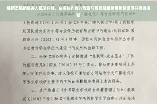摘要:本文介绍了经销渠道的销售实力证明的重要性,并通过一位自媒体作者的观察和解读,探讨了如何有效地证明经销商的销售能力。文章还提供了一个经销商销售证明书模板,以帮助读者更好地了解如何撰写此类证明。通过本文,读者可以了解到经销渠道的实力对于商业成功的重要性,并掌握如何证明经销商销售实力的方法。