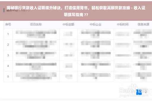 在当今社会,越来越多的人开始关注个人信用建设,而银行贷款收入证明作为信用评估的重要依据之一,对于申请贷款的人来说至关重要,一份优秀的收入证明不仅能够提高贷款额度,还能降低贷款利率,为您的贷款之路保驾护航,本文将详细介绍如何提升银行贷款收入证明,助您轻松打造信用背书,实现高额贷款梦想。