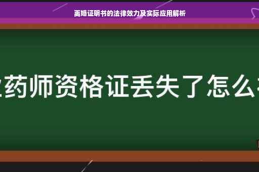 随着社会的进步和观念的变迁,离婚现象在当今社会愈发普遍,离婚证明书,作为记录婚姻终结的重要文件,其法律效力及实际应用价值逐渐受到人们的广泛关注,本文将详细解析离婚证明书的法律效力,并探讨其在现实生活中的实际应用。