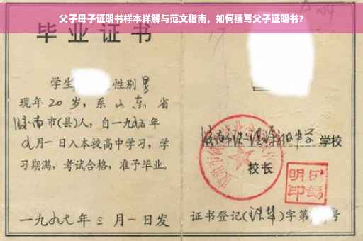 摘要:本文介绍了父子母子证明书样本及其实际应用,重点阐述了父子证明书的写法。通过提供范文,让读者了解如何撰写一份规范的父子证明书。本文旨在帮助需要撰写此类证明的人,解决在实际应用中遇到的困难,使父子关系得到合法证明。