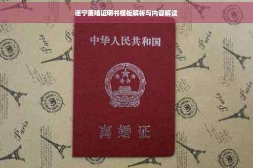 摘要:本文将介绍遂宁离婚证明书模板及其相关内容解读。通过本文,读者可以了解离婚证明书的格式和要求,包括模板中的必要信息,如双方当事人的基本信息、婚姻状况、离婚时间等。还将提供遂宁离婚证明书模板的图片,以便读者更好地了解模板的外观和内容。文章内容简洁明了,字数控制在100-200字之间。