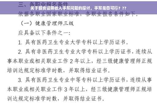 随着社会的快速发展,人们对于工作和收入证明的需求越来越高,薪资证明是展示个人收入状况的重要文件之一,广泛应用于贷款申请、租房、信用卡申请等多个领域,关于薪资证明收入能否手写的问题,存在一些疑问和困惑,本文将就此问题展开讨论,并为大家提供相关的注意事项和建议。