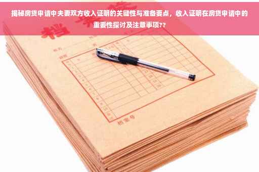 在现代社会,购房已成为许多人的重要生活目标,面对高昂的房价,绝大多数人不得不选择贷款购房,在申请房贷的过程中,夫妻双方收入证明是不可或缺的一环,本文将详细介绍夫妻双方收入证明在房贷申请中的重要性,以及准备收入证明时需要注意的要点。