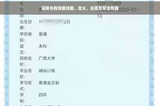 在日常工作和生活中,证明书是我们经常接触的一种重要文件,它是对某一事实或事件的确认和证明,具有法律效力,而证明书的有效期则是证明书的一个重要组成部分,它决定了证明书的使用范围和时效性,本文将详细解析证明书有效期的含义、种类、确定方法以及注意事项,以帮助大家更好地理解和应用。