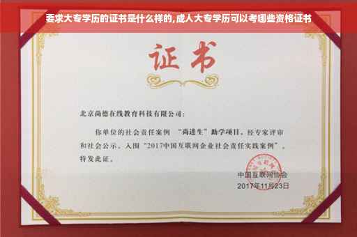 到此,以上就是小编对于要求大专学历的证书是什么的问题就介绍到这了,希望介绍关于要求大专学历的证书是什么的4点解答对大家有用。