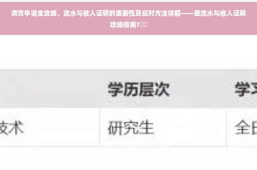 随着房价不断攀升,购房贷款已成为越来越多人的选择,在申请房贷过程中,银行流水和收入证明是审核贷款资格的重要依据,本文将详细介绍房贷查流水和收入证明的重要性,以及应对方法,帮助广大购房者顺利申请房贷。