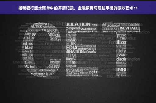 随着科技的发展,金融数据与个人隐私之间的界限逐渐模糊,关于银行流水查出开房记录的话题引发了广泛关注,本文将深入探讨银行流水记录与开房信息之间的联系,分析背后的技术原理,并探讨个人隐私在金融数据中的保护问题,我们将分享相关案例,以提醒公众在信息时代如何保护自己的隐私。