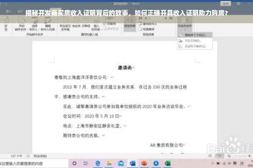 摘要:开发商买房收入证明是购房过程中的重要环节,背后隐藏着诸多细节和故事。本文将揭示收入证明的重要性,并介绍如何开具开发商买房收入证明。从准备材料到具体流程,本文将为您提供详尽的解答,助您顺利购房,避免不必要的麻烦。