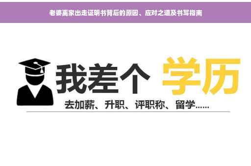 摘要:本篇内容主要探讨老婆离家出走的原因及应对之道,并深度解析了如何撰写老婆离家出走证明书。文章指出,面对这种情况,首先要冷静分析原因,沟通解决矛盾,寻求专业帮助。证明书应包含基本情况、出走时间地点、原因分析及建议等要点,语言要客观公正,避免情绪化表达。文章旨在帮助受困家庭找到解决问题的方法,促进家庭和谐。