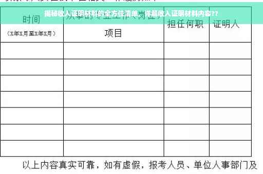 通过本文的介绍,相信您对收入证明材料的全方位清单有了更深入的了解,在日常生活中,请您根据实际情况准备好相应的收入证明材料,以便在需要时能够迅速提供,也要注意材料的真实性和完整性,为自己的信用状况负责,希望本文能为您的生活和工作带来帮助,如有更多疑问,请随时关注我们的后续文章。