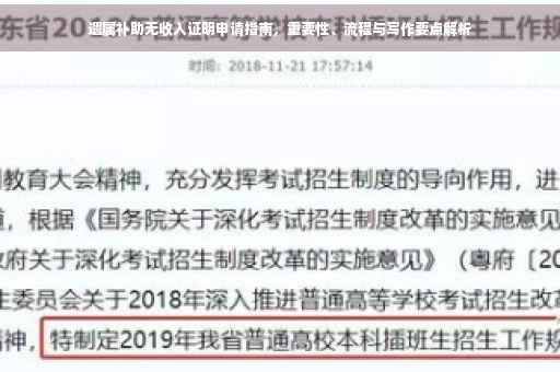 4、无收入证明:这是申请过程中的关键材料,申请人需要所在单位或社区出具的无收入证明,以证明申请人目前无固定收入或收入不足以维持正常生活。
