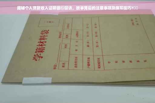 随着金融市场的快速发展,个人贷款已成为解决生活中各种需求的重要方式,在申请贷款时,收入证明是必不可少的一环,而银行回访则是进一步核实信息的关键步骤,本文将围绕“个人贷款收入证明银行回访”这一主题,帮助读者了解背后的故事及注意事项。