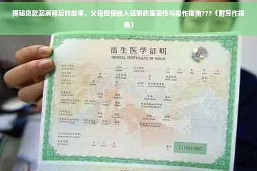 摘要:本文探讨了贷款买房时父母担保收入证明的重要性,揭示了贷款买房背后的故事。文章介绍了父母担保收入证明的作用和必要性,同时提供了操作指南,指导读者如何撰写父母担保收入证明。本文旨在帮助购房者了解贷款过程中的细节,顺利获得贷款,实现购房梦想。