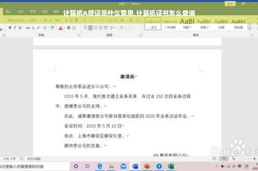计算机A级证就是计算机一级证书的意思; 全国计算机等级考试是社会考试,就考试性质而言,它是一种重视应试人员对计算机和软件的实际运用能力的考试。考试分为四个等级,不同等级的内容不同,一级主要考核微型计算机基础知识和使用办公软件及因特网(Internet)的基本技能。 一级分为DOS版和Windows版,考核应试者计算机基本知识和使用微机系统的初步能力。