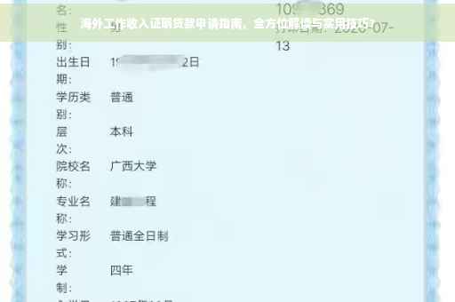 在海外申请贷款时,银行或其他金融机构通常需要申请者提供收入证明,作为评估申请者还款能力的重要依据,海外工作收入证明主要包括工资单、银行流水、税务证明等文件,能够证明申请者的收入水平、工作稳定性以及信用状况,准备齐全、真实的海外工作收入证明对于顺利申请贷款至关重要。