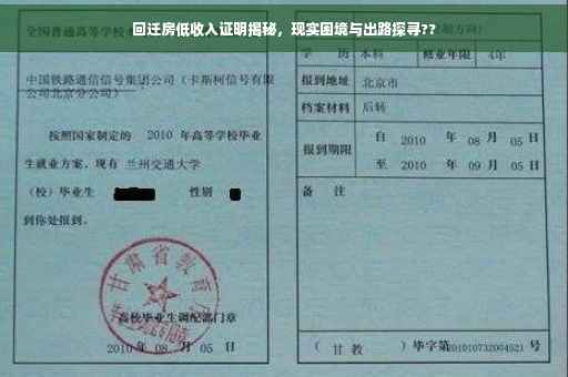 随着城市化进程的加快,大量居民因城市扩张而面临拆迁问题,对于许多家庭来说,回迁房是拆迁后的重要保障,但在回迁房的分配过程中,低收入证明成为了许多家庭面临的难题,本文将围绕回迁房低收入证明这一主题,深入探讨现实困境、政策解读、应对策略以及实际案例分析。
