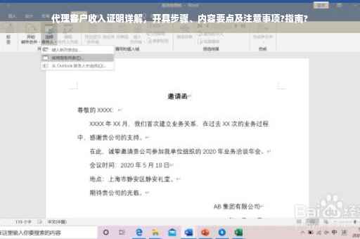 随着代理业务的普及,收入证明成为了代理客户应对各种生活需求的必要文件,本文将引导您全面了解代理客户收入证明的开具流程、内容,并强调注意事项,辅以案例分析,帮助您更好地完成这一流程。