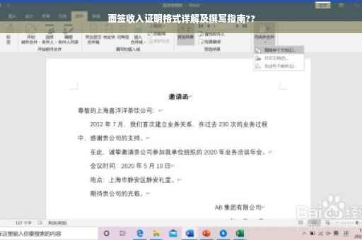 摘要:本文将详细介绍面签收入证明的格式要求,包括如何正确书写和注意事项。文章将指导读者了解收入证明的结构,如标题、正文、结束语等部分应如何填写,以及需要提供哪些必要的信息,如公司名称、部门、职位和收入等。本文旨在帮助读者按照规定格式准备面签收入证明,以确保其有效性和可信度。