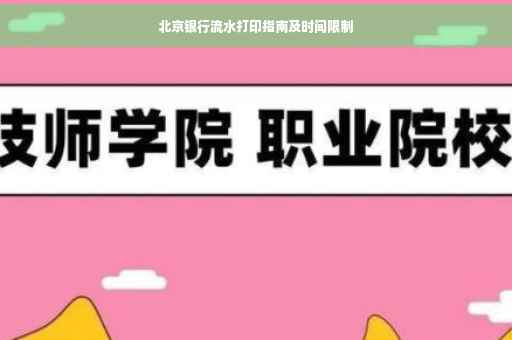 摘要:北京银行打印流水时间指南,提供关于北京银行打印流水的时间限制信息。客户可以根据此指南了解在哪些时间段内可以前往北京银行打印流水,以便更好地管理个人财务和进行业务操作。