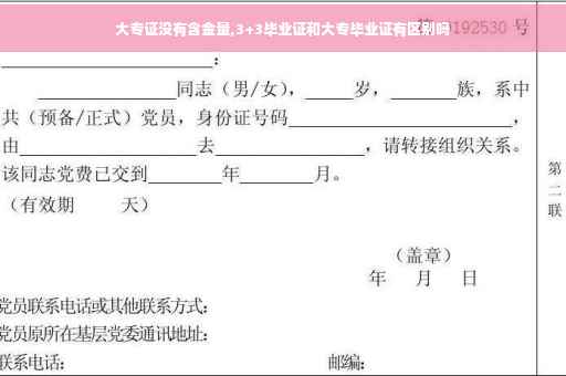 3+3毕业证和大专毕业证有区别。因为3+3大专是属于我国普通全日制中等职业教育技术高中开办的非全日制成人大专。这种非全日制大专的含金量比较低,很多企业不认可。