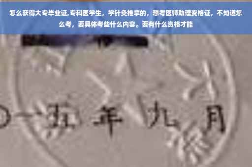 到报名的时候报名参加考就可以了,需要毕业证,一年的试用证明。只能报考中医助理医师,考试分两次,6-7月份考技能操作,包括西医基本技能如体格检查,常规诊断及治疗操作。中医技能包括四诊及针灸推拿治疗操作。9月份笔试,笔试包含十四科的综合卷,西医内容主要是诊断学、内科学。其他的主要是中医内容和医疗法规。