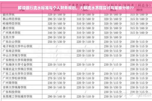 摘要:本文解读了银行流水标准,阐述了个人财务规划中银行流水的重要性。文章介绍了银行流水多大算大额的具体标准,并提醒读者合理规划个人财务,根据自身情况选择合适的银行流水标准。通过阅读本文,读者可以更好地了解银行流水与个人财务规划的关系,从而做出明智的财务决策。