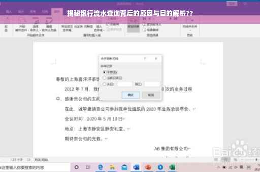 (注:本文内容仅供参考,具体实际情况可能因地区、政策等因素而有所不同。)希望本文能对您有所启发,更好地了解银行查流水的相关事宜。