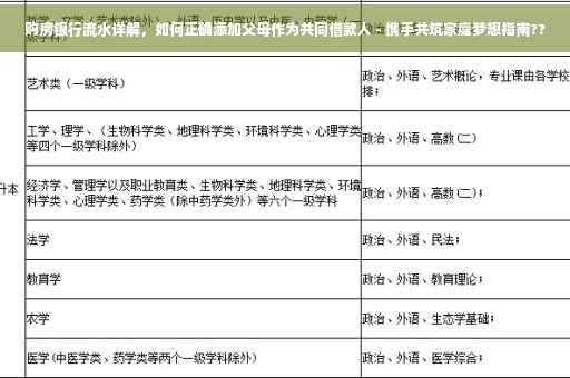 在当下火热的房地产市场中,购房已成为众多人的生活焦点,面对不断攀升的房价,许多购房者需要借助银行贷款来实现购房梦想,银行流水作为评估借款人还款能力的重要依据,其重要性日益凸显,有时,为了增加贷款的成功率或提高贷款额度,我们会考虑将父母作为共同借款人,本文将详细解析在申请购房贷款时,如何正确添加父母为共同借款人,以便更好地完成购房银行流水流程。
