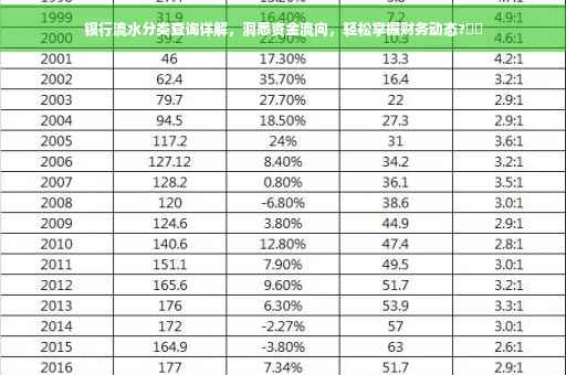 随着个人财务管理的日益重要,越来越多的人开始关注自己的资金流向,银行流水作为记录个人银行账户交易的重要文件,对于理财规划、贷款申请等方面具有关键作用,本文将详细介绍如何进行银行流水分类查询,并帮助你更好地掌握个人财务状况。