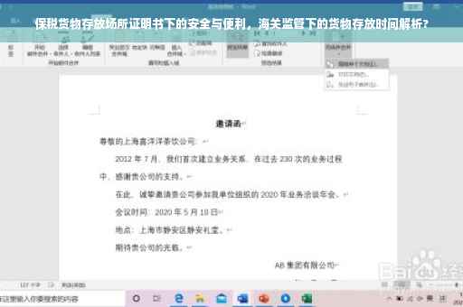 在全球化的背景下,跨国贸易日益频繁,保税货物,作为一种特殊的贸易形式,其存放场所的管理与证明显得尤为重要,保税货物存放场所证明书是证明保税货物存储地点符合海关监管要求的重要文件,本文将详细介绍保税货物存放场所证明书的背景、作用、办理流程及其在实际应用中的深远意义。