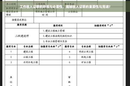 在现代社会,随着经济的蓬勃发展和就业市场的繁荣,工作收入证明已然成为我们生活中不可或缺的一部分,工作收入证明到底有何用处?本文将为您深入解析工作收入证明的重要性及其在实际生活中的应用场景。