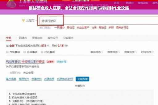 摘要:本文将为你揭示黑色收入证明的制作方法,并提供合法合规的操作指南。通过本文,你将了解到如何制作一份符合规范的黑色收入证明模板,以确保你的收入证明真实有效且合法合规。无论你是需要申请贷款还是其他用途,本文都将为你提供有用的指导和建议。