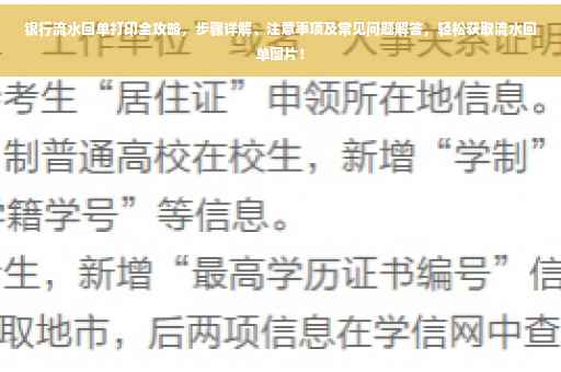 在现代社会,银行业务日益普及,银行流水回单作为个人和企业财务支出的重要记录,其打印需求也日益增长,无论是个人还是企业,在办理贷款、税务申报等场合,都需要提供银行流水回单作为证明,本文将详细介绍如何打印银行流水回单,包括步骤、注意事项及常见问题解答,帮助大家轻松获取银行流水回单。