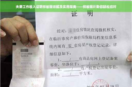 在现代金融事务中,夫妻工作收入证明样板图成为不可或缺的重要材料,一份清晰、规范的收入证明不仅能提高办事效率,更能增加信任度,本文旨在详细介绍夫妻工作收入证明样板图的制作及应用,帮助广大市民更好地了解和运用,样板图主要包括以下内容: