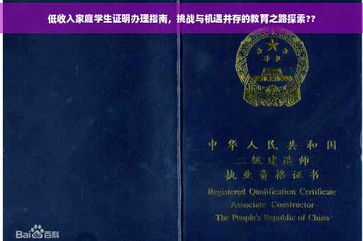 在当今社会,教育公平问题越来越受到人们的关注,低收入家庭的学生在接受教育过程中面临着诸多挑战,其中一项重要的挑战便是如何证明自己的家庭经济状况,本文将探讨低收入家庭学生证明的重要性、所面临的挑战、解决方案以及对学生的影响,旨在引发公众对这一问题的关注,并为改善教育公平现状提供思考。