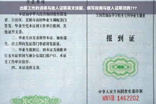 出国工作是一个充满诱惑和挑战的选择,在申请过程中,准备一份规范的收入证明英文文件至关重要,本文介绍了出国工作的诱惑、收入证明英文的重要性、如何准备以及注意事项,希望能为有意出国工作的读者提供帮助。