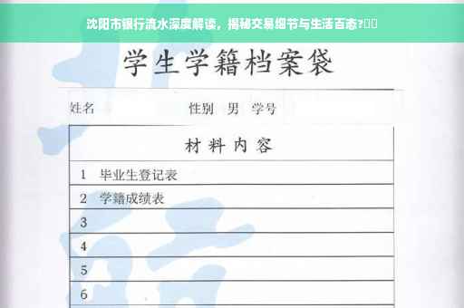 随着现代金融业的快速发展,银行流水作为个人和企业经济活动的真实写照,越来越受到社会各界的关注,特别是在购房、贷款等方面,银行流水的重要性日益凸显,本文将带您深入了解沈阳市银行流水的相关内容,解读银行交易细节背后的故事,揭示生活百态。