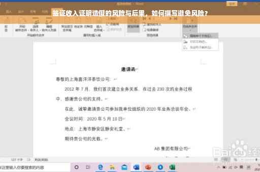 随着全球化的加速,越来越多的人选择出国留学、旅游或工作,在申请签证时,一些申请者可能会遇到需要提供收入证明的情况,在某些情况下,一些人可能会选择开具假的收入证明以符合签证申请的要求,本文将探讨签证开假收入证明的风险和后果,帮助申请者正确认识和对待这一问题。