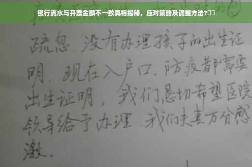 银行流水与开票金额不一致的问题是企业日常经营中可能面临的挑战,通过加强内部控制、外部监管以及与客户的沟通合作,企业能够更有效地应对这一问题,确保财务数据的真实性和准确性,为企业的健康发展提供有力支持,我们应高度重视这一问题,并采取有效措施加以解决。