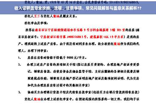 本文是关于收入证明盖章的攻略,详细介绍了流程、注意事项及常见问题解答。内容包括盖收入证明章的重要性、具体步骤、注意事项以及解决常见问题的建议。阅读本文,将帮助您了解如何正确盖章收入证明,避免不必要的麻烦。