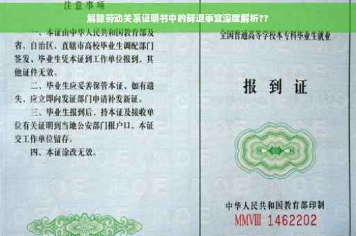 在当今社会,劳动关系是社会经济运行的重要基石,随着企业的发展和变革,劳动者的岗位变动、劳动关系解除等现象时有发生,解除劳动关系证明书作为劳动关系终止的重要文件,对于劳动者和企业来说都具有重要意义,本文将围绕“解除劳动关系证明书”中的辞退事宜进行全面解读,帮助劳动者和企业更好地理解和应对相关情况。